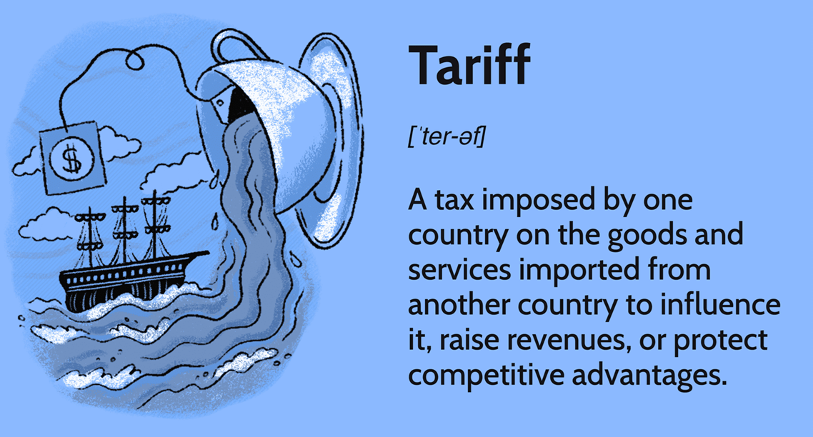 A tax imposed by one country on the goods and services imported from another country to influence, raise revenues or protect competitive advantages.