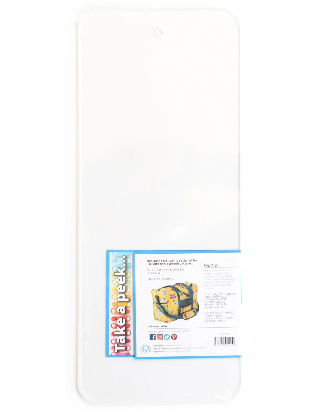 Add support to the base of your ByAnnie project using this sturdy clear acrylic stabilizer.Each base stabilizer insert measures 6in wide x 14-3/4in long x 1/10in thick.