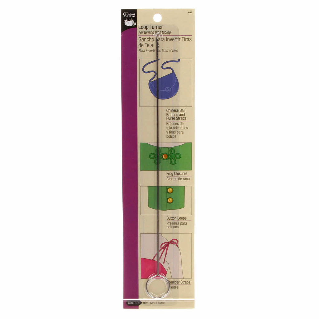 The Dritz Loop Turner 9.5in is your go-to gadget for turning fabric tubes inside out, perfect for crafting skinny straps, button loops, and frog closures. This clever little tool glides smoothly through bias tubing, hooking onto the fabric’s end and pulling it neatly through. It’s ideal for whipping up spaghetti straps, frog closures, button loops, Chinese ball buttons, purse straps, and so much more!