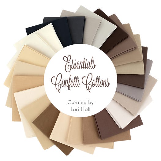 This Fat Quarter Bundle from Lori Holt's Essential Confetti Cotton collection offers a versatile palette of 24 pieces, each showcasing a different shade from soft whites to deep navy blues, providing a harmonious blend of neutral and accent colors