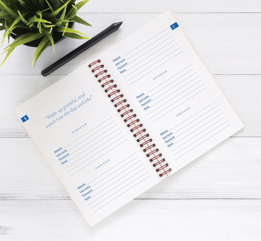 Keep your digital life organized with this charming password keeper featuring a stunning quilt design by beloved designer Bonnie K. Hunter. Alphabetically organized pages make finding your login details effortless, while the convenient spiral binding lets you flip to any entry in seconds. Sprinkled throughout are Bonnie's signature witty quotes to brighten your day. Perfect for yourself or as a thoughtful gift for fellow quilting enthusiasts who appreciate both beauty and practicality.