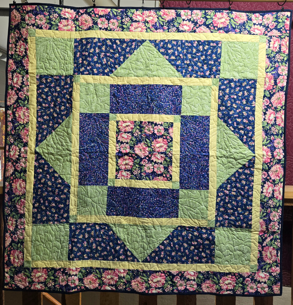 This is a rare opportunity to own a one and only store sample quilt. Created to showcase a specific fabric line or pattern, this quilt is a finished display piece that blends expert craftmanship with stunning designs.