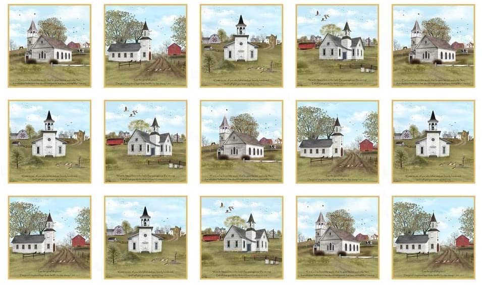 Experience the serene beauty of countryside churches with the Amazing Grace Quilt Panel by Elizabeth's Studio. This exquisite panel features a series of picturesque church scenes set against a soft cream background, highlighted with touches of gold, green, and red. Each block captures the charm of rural landscapes, making it an ideal centerpiece for your quilting projects.