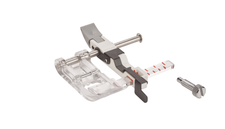 The Zigzag foot with guide makes precise sewing very easy. The most common seam allowances are marked on the guide arm and can be adjusted fast with the seam guide on the right side.