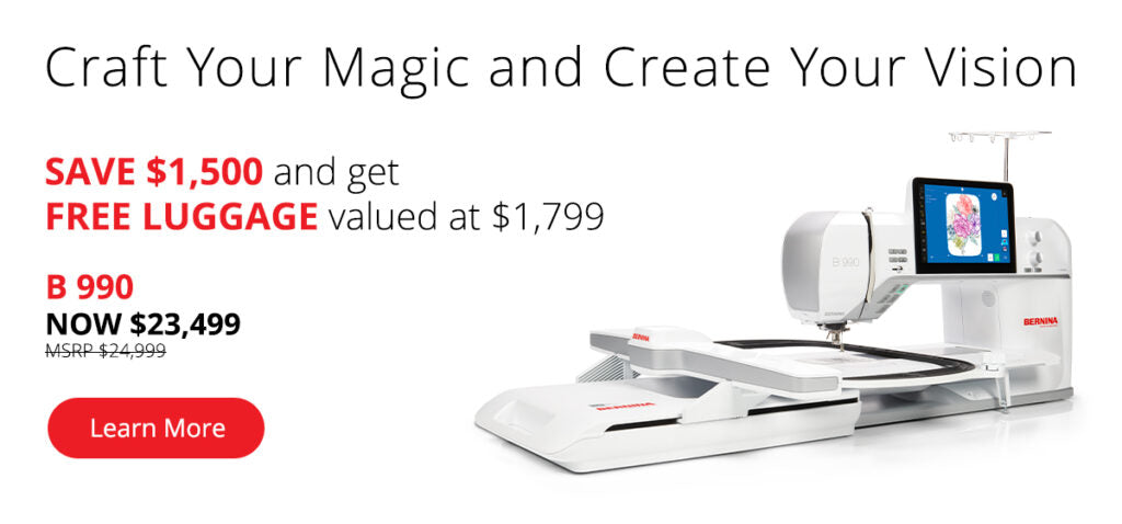 Indulge in the luxury of Swiss engineering with the Bernina 990 sewing and embroidery machine. Its spacious design, intuitive technology, and versatility allow for magical creations in sewing, quilting, and embroidery. Elevate your crafting experience with this premium machine.